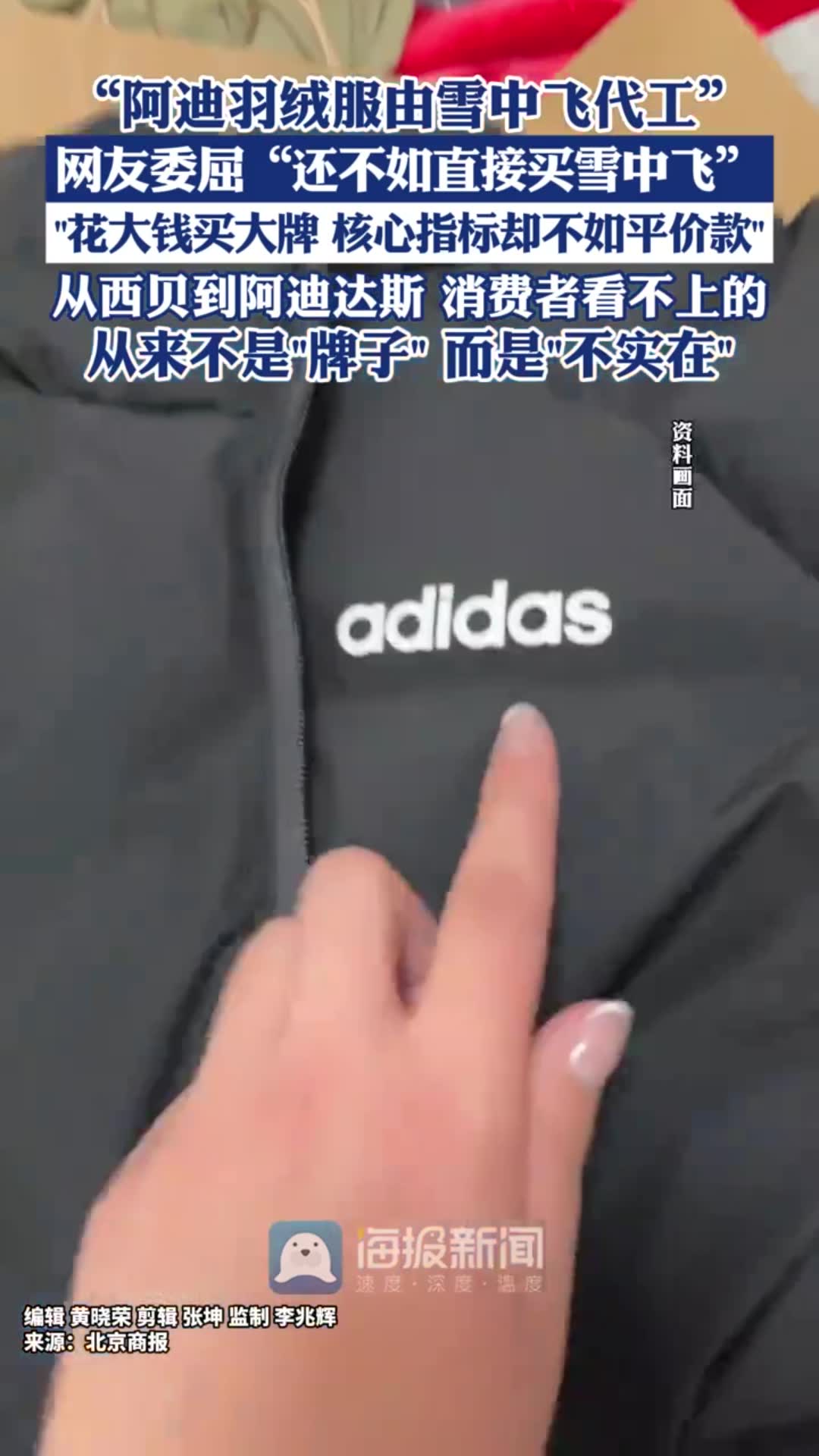 • 主播說丨“阿迪羽絨服由雪中飛代工”性價比低遭吐槽,消費者看不上的從來不是“牌子”而是“不實在”